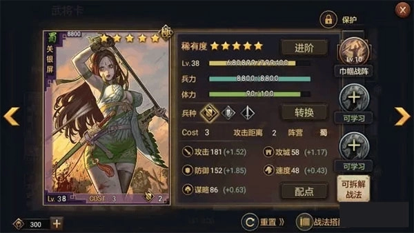 为什么我们会认为吕姬是主角呢?尽管吕姬的攻击成长偏低,满级时仅能达到210上下,全红星状态下也不过250左右,但温侯无双组合能带来20多点的攻击加成,加上这个组合加成后,她的攻击力就还算不错了。接下来我们再看看她的战法。
