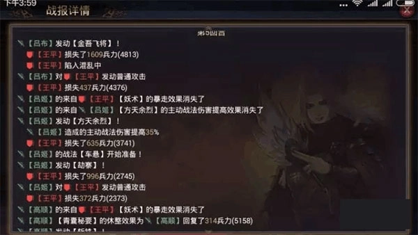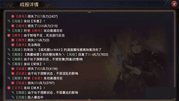 吕姬的伤害输出稳定性虽不算特别突出,但上限相当可观——单次车悬战法的最高伤害可达3007,毫不夸张地说,这一数值已与夏侯渊的车悬伤害十分接近;她的劫寨战法伤害也能稳定在1000到2000之间,对于四星武将搭配四星战法的组合而言,这样的表现已然相当出色。 与此同时,高顺的战术价值也体现得淋漓尽致:他不仅能无视反计之策与妖术带来的控制效果,还能凭借低成本的斩铁战法,对敌方部队施加有效的控制,进一步巩固战场优势。