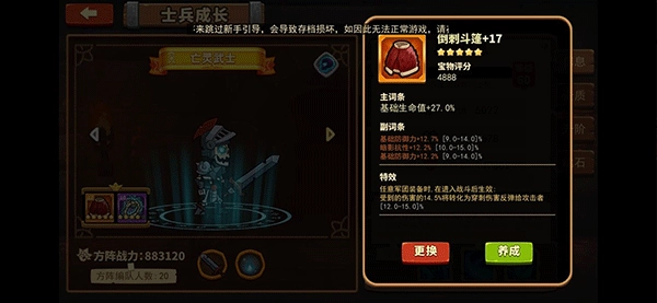 亡灵武士的宝物配置中,专属宝物与五星套装特效组合后具备反伤效果;若选择低配方案,则只需搭配反伤属性与套装特效即可,四星或五星套装均可适用。