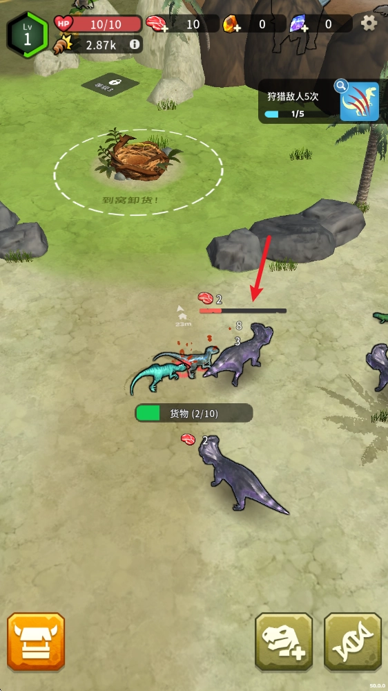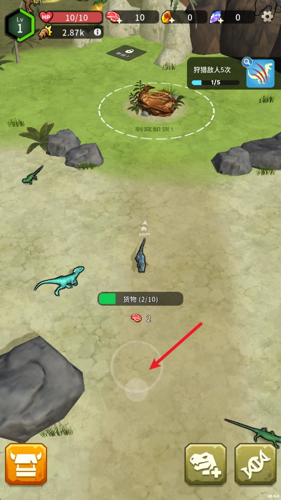 在游戏里拖动屏幕,虚拟摇杆就会弹出,用来操控恐龙移动。