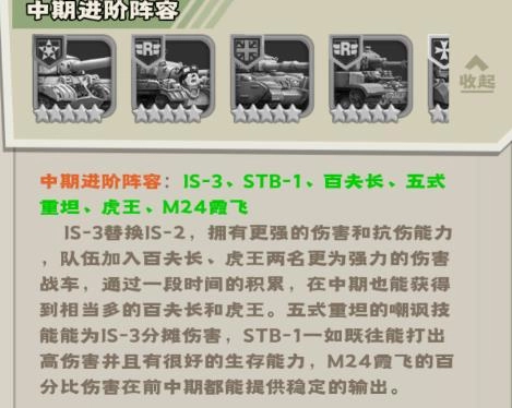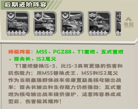 丰富的坦克战车等你去搭配使用,各种阵容组合可以让玩家自由选择来搭配。