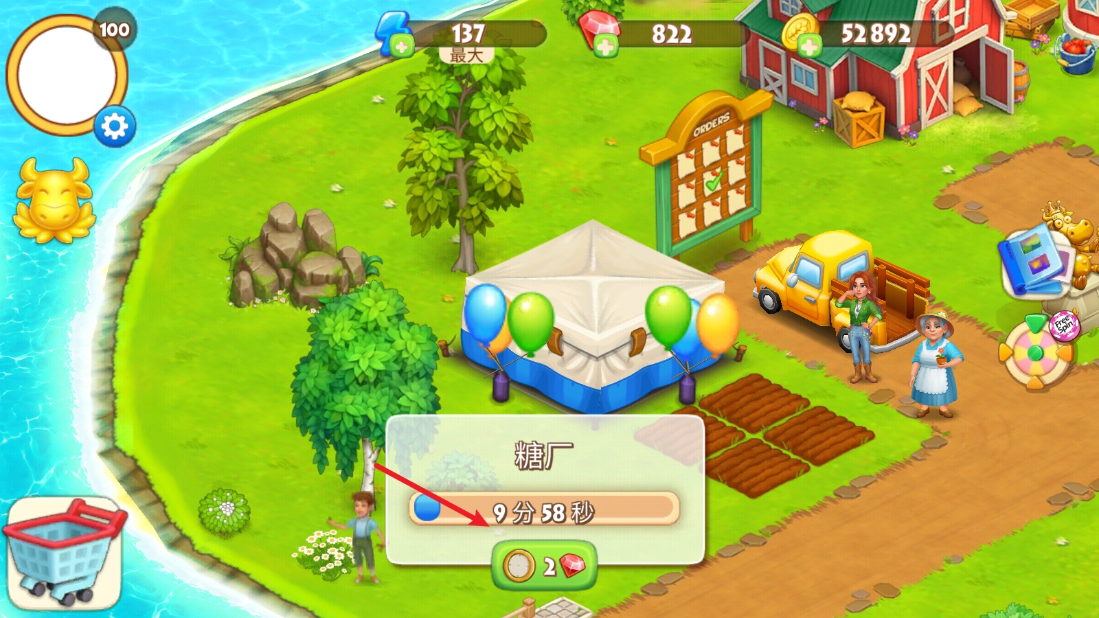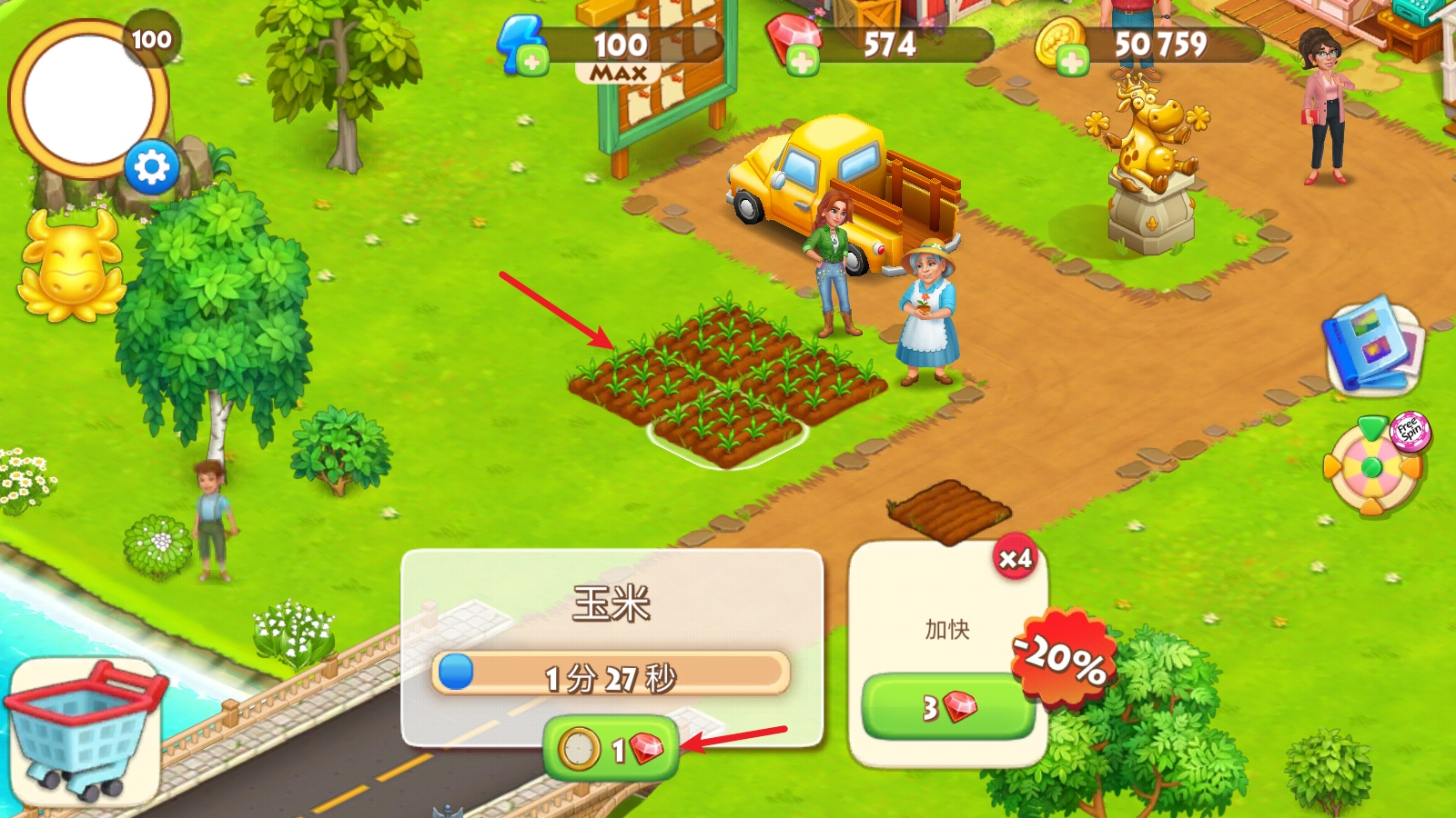 作物种下后,需要一段时间才能成熟,也可以花费钻石让它立刻成熟。