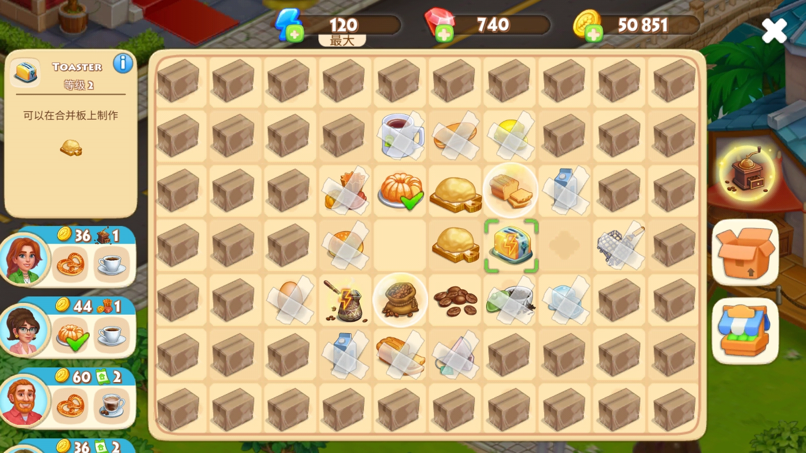 还能借助简单的二合一玩法完成订单,获取金币奖励。