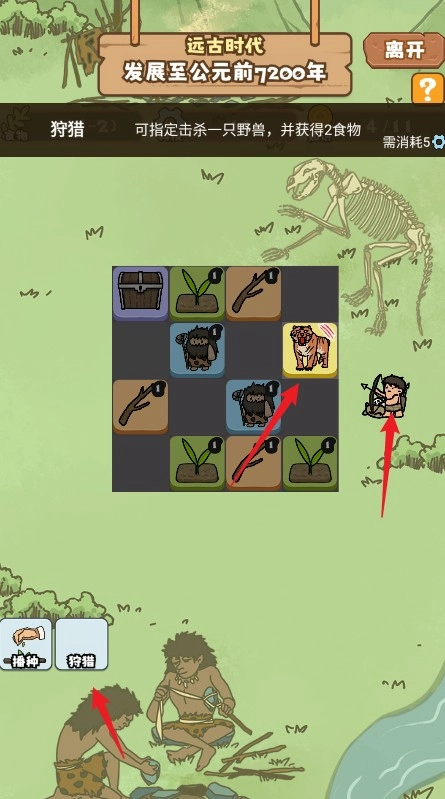 当文明发展到新阶段时,就能解锁【狩猎】技能以应对野兽。