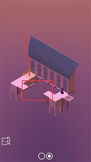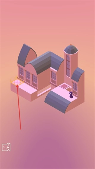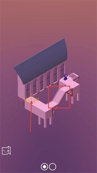 2、进入粉色建筑场景后,控制角色移动到标有标记的平台区域,就能完成关卡。