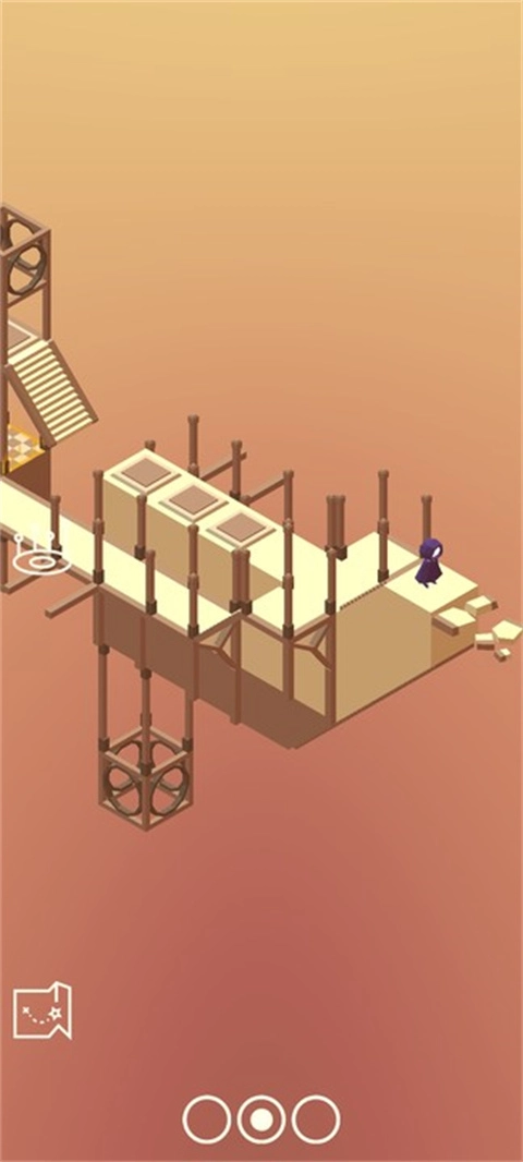 4、场景再次发生变化后,平台之间生成了【楼梯】,需要操控角色借助楼梯进行移动,从而连接起不同的平台,以便继续展开探索。