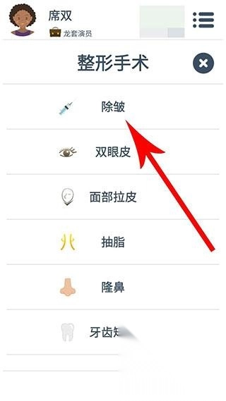 4、打开游戏内的整容选项列表后,能看到多个分类选项,这时点击第一行的【除皱】分类,接着点击【进行手术】按钮。