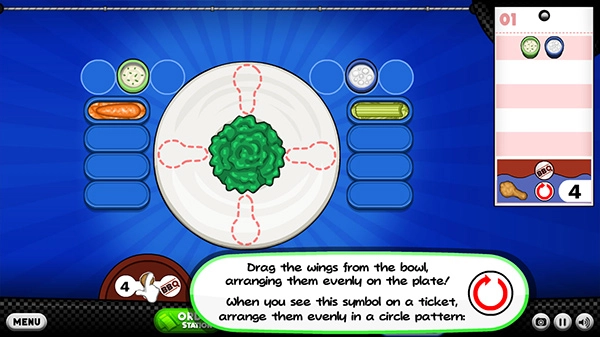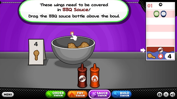 1、玩家需要根据客人的要求制作最美味的鸡翅。