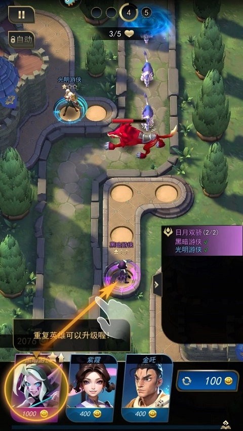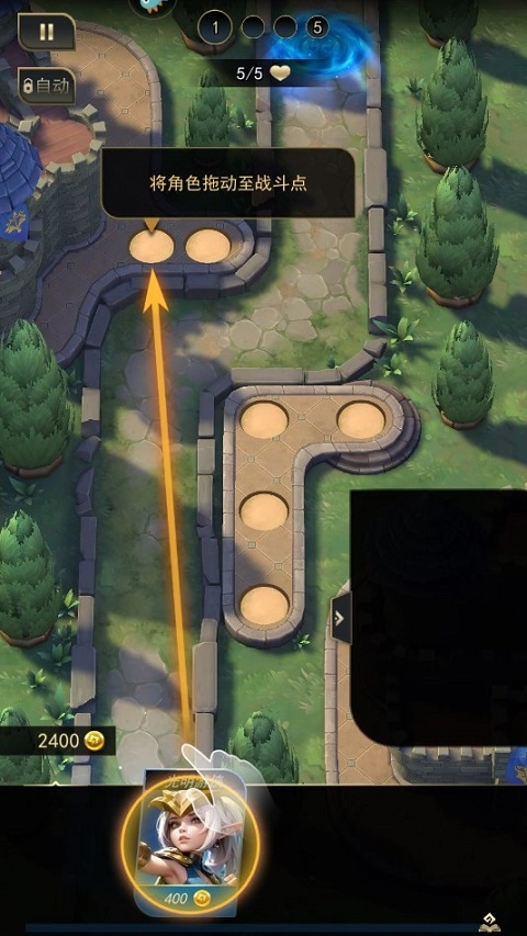 1、游戏开始时,玩家可以拖动底部的英雄卡牌,把角色移动到战斗点。